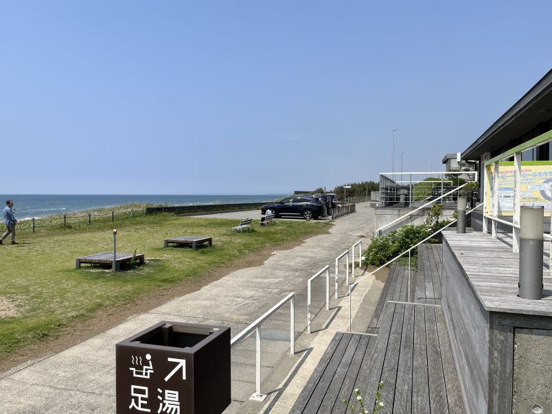ペット同伴が可能な屋外テラス「里海カフェ」やドッグランもあります。 足湯があり、足の砂を洗い流す洗い場もあります。 この道の駅で良く購入するのは、宝達志水町の名物「おだまき」。しっとりもちもちの生地の中にあんが入っています。よもぎの他にも色々な種類がありますが、小豆あんが好きなのでよもぎの購入率が高い…。おだまきは大人になってから知りましたが、金沢ではなかなか購入できないのでこの道の駅に寄った時は必ず購入しています。そのほか、「道の駅 のと千里浜」でも購入できるようです。 浜揚天は「道の駅 能登食祭市場」にお店があるのでそちらで直接購入できます。種類も多く揚げたてのアツアツを直接お店で購入した方がより美味しいと思います。 能登うしで有名な「風舎てらおか」の能登ぶたカレーをいただきました。まだ食べていませんがこの道の駅で購入したそうです。 平日の日中ですが、犬と散歩をしている人たちやサラリーマン風の男性が2〜3人で砂浜を歩いていました。天気がよいと浜に降りたくなりますね。 (下の画像は2025.05)