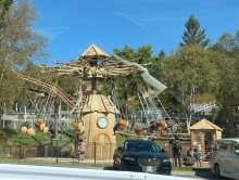 | そのまま広域農道を逆方向に進み、大芝高原の前を通り伊那北ICから高速に入り諏訪ICで降りました。昼食は兄の勧める白樺湖の蕎麦屋さんで決まり。 お馴染みのビーナスラインですが、今回は蓼科へは寄らずにR152で真っ直ぐに白樺湖へ。その前に、もし原村へ行ったら寄る予定だった「たてしな自由農園」の蓼科店であれこれ買い物。珍しい品々についつい財布のひもが緩む母ですが、遠出は年に一度程度なのでお好きなようにー。私は兄お勧めのくるみの銘菓などを購入。兄は夕食のおかず用の肉を購入していました。段々とクーラーボックスがいっぱいに…。観光客には利用しやすいお店でした。 とにかく天気が良い。天気が良いとそれだけで楽しさ倍増。真っ青な空。が、ここも紅葉はまだまだといった感じでした。 これまでは、天気が悪い時しか通っていない白樺湖ですが、天気が良いと色々と目に付きます。何やら楽しそうな木造の遊具のある「白樺リゾート」。よく見ると、ドングリの形をしたかわいい回転ブランコや木造のジェットコースターなどたくさんの遊び場があり楽しそうなエリア。子どもは喜びそう。 |