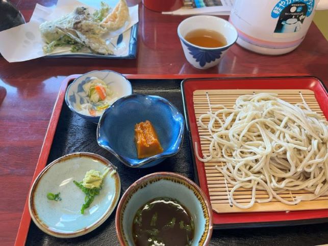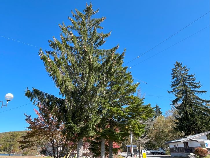 | 兄が2〜3年前に利用したことのあるお蕎麦屋さん。お店は通りから少し入ったところにあるのでちょっと分かりにくいかも。 よくある古民家風のお蕎麦屋さんだと思っていたのですが全く違いました。「御宿 朝日ヶ丘」、えっ?宿泊もできる?現在は宿泊は出来ないようです。お店は不定休とのことでしたが商い中の札が出ていて一安心。玄関で靴を脱いで上がります。 店内はお座敷で広くはありませんが平日なので空いていました。 ざるそばが運ばれてくると「今日から新そばです!」と。えっ?てっきりどこの蕎麦屋さんも新そばの合図にそば玉が下がるものだと思っていましたが、そうとも限らないようですね。偶然の新そば、とてもラッキーでした。小鉢や天ぷらはその日によって違うようです。そばはもちろん美味しいのですが、お勧めだけあってニジマスのことこと煮がとても美味しかったです。 いつも食べている最中で写真を撮ることになり反省、見苦しくて申し訳ない…。 そばを食べた後はカフェでお茶タイム。湖畔のパーキングで写真を撮っている時、ふと上を見上げると…奈川で拾った大きな松ぼっくり(長さ20cm程)と同じ松ぼっくりがいっぱいぶら下がっている大きな木が目に入りました。この木はドイツトウヒでしょうか?地面には全く松ぼっくりが落ちていなかったので、前日の土日にみな拾ったのかも。 さて、これからどうしよう?今回は無理のないドライブを目標としあちこち走り回らない予定。天気も良く八ヶ岳がとてもきれいに見えていたので、もう少し登ってゆっくり眺めることにしました。 |