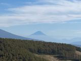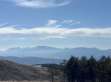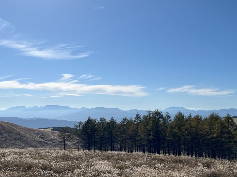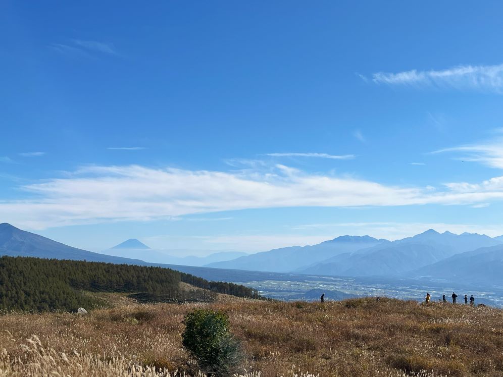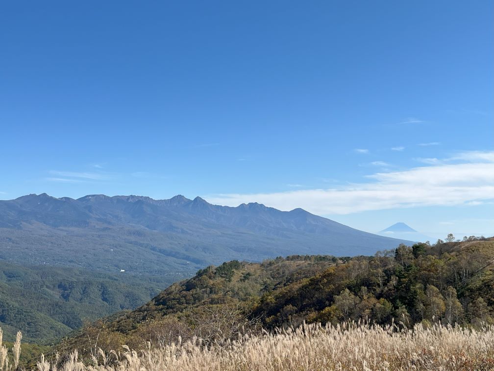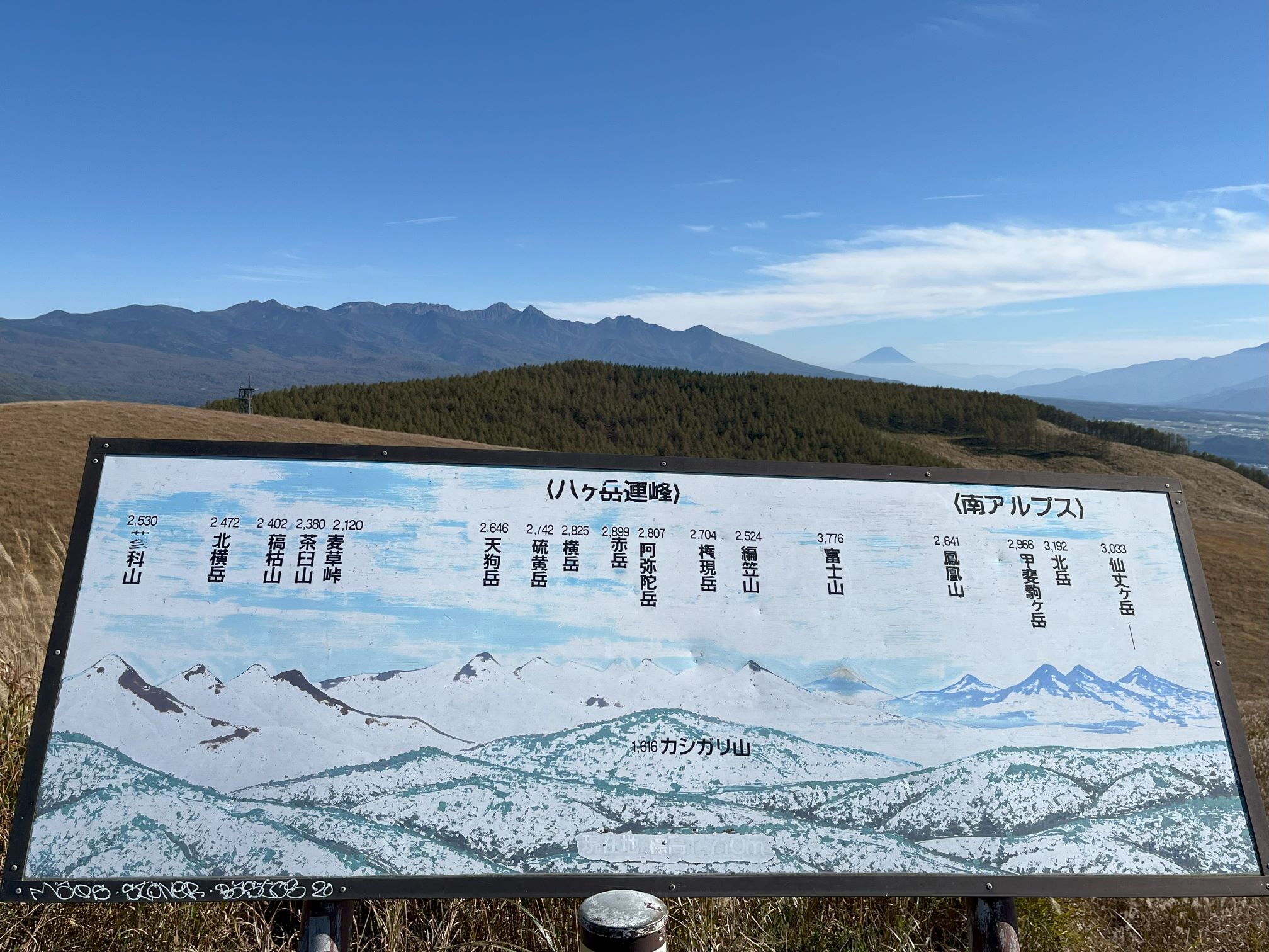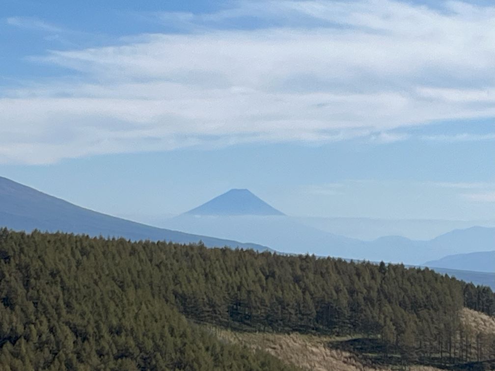 | 最初に停めた駐車場(伊那丸富士見台だったかも?)からくっきり見える八ヶ岳を眺めていたのですが、ん?えーっ!富士山が見えるではありませんか!これまで私は富士山に全く縁が無かったので最初から期待していませんでした。ここで写真を撮るには電線が邪魔だったので、急いで霧ヶ峰富士見台に移動。 霧ヶ峰からの富士山は、想像していたよりは大きく見えました。きっと見えても米粒ぐらいだろうと思っていたので…。富士山の裾野に薄い雲がかかっていましたが、シルエットは透けて見えていました。 逆光ですが南アルプス・中央アルプス・北アルプスと日本アルプスのシルエットが見えました。ただ、私にはどれがどの山かは分かりません。唯一、大きな独立峰の御嶽山だけは案内図を見なくても分かります。天気が良いので駐車場は多くの人で賑わっていました。 帰宅後に知ったのですが、この辺りは去年の5月に山火事があったそうです。このビーナスラインは母にとっても思い出の場所とのこと。 |