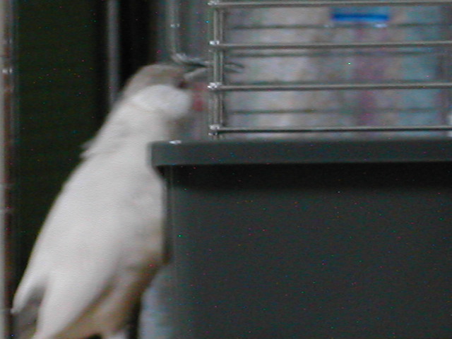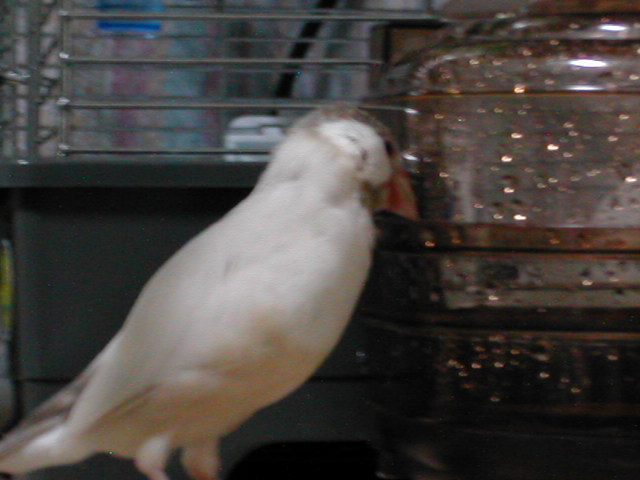 やっと投薬終了。 念願の水浴びも再開。何度も何度も続けて浴びていました。風邪をひかないようにね・・・(^^;;; 。 外に出たくなったようで、早速お散歩。私の所までパタパタと飛んで来た!ほっ♪和解成立も間近?!久しぶりに自分の基地もチェックしていた。 これでもう大丈夫でしょう。。。 が、まだ首をくねらせるなどの症状が時々見られるので、引き続きサプリメント使用。 |